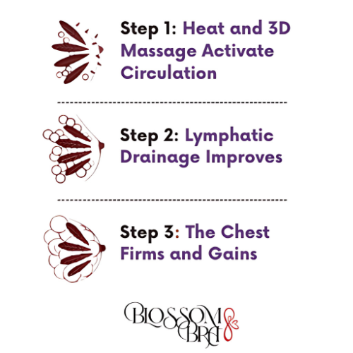 In just a few minutes daily, Blossom bra offers a natural, non-invasive, and enjoyable way to care for your breasts.